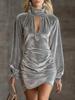 Autumn Winter Korean Velvet Figure-Hugging Sexy High-End High Neck Solid Color Dress for Women
