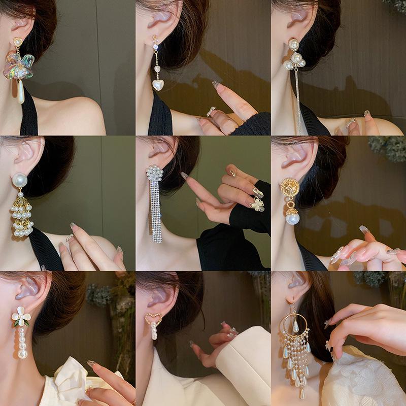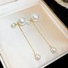 French Retro Luxury Silver Pearl Tassel Stud Earrings - Elegant and Versatile for Women