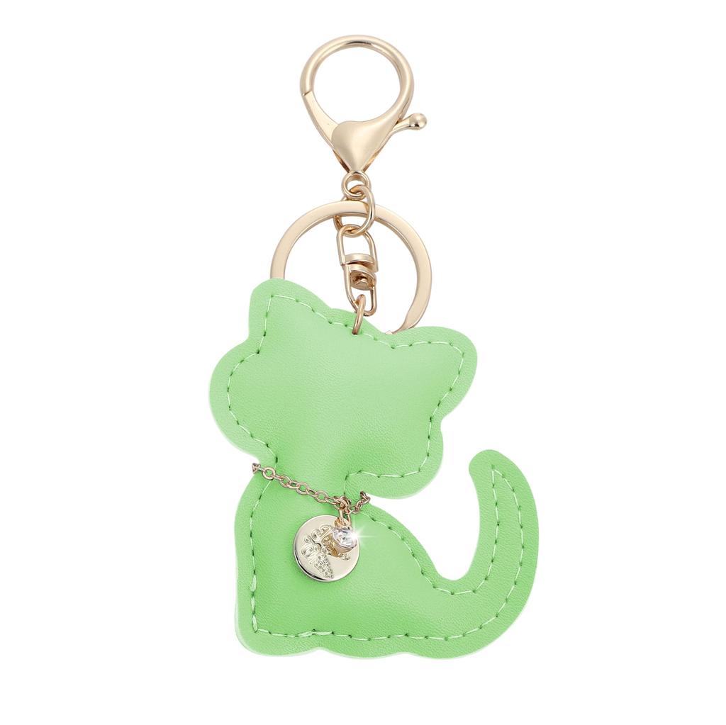 Tonecraft Cat Key Holder, Simple, Orthodox, Bag Charm, Popular, Stylish, Cute, Cat, PU Leather, Squishy, Green (light Green)