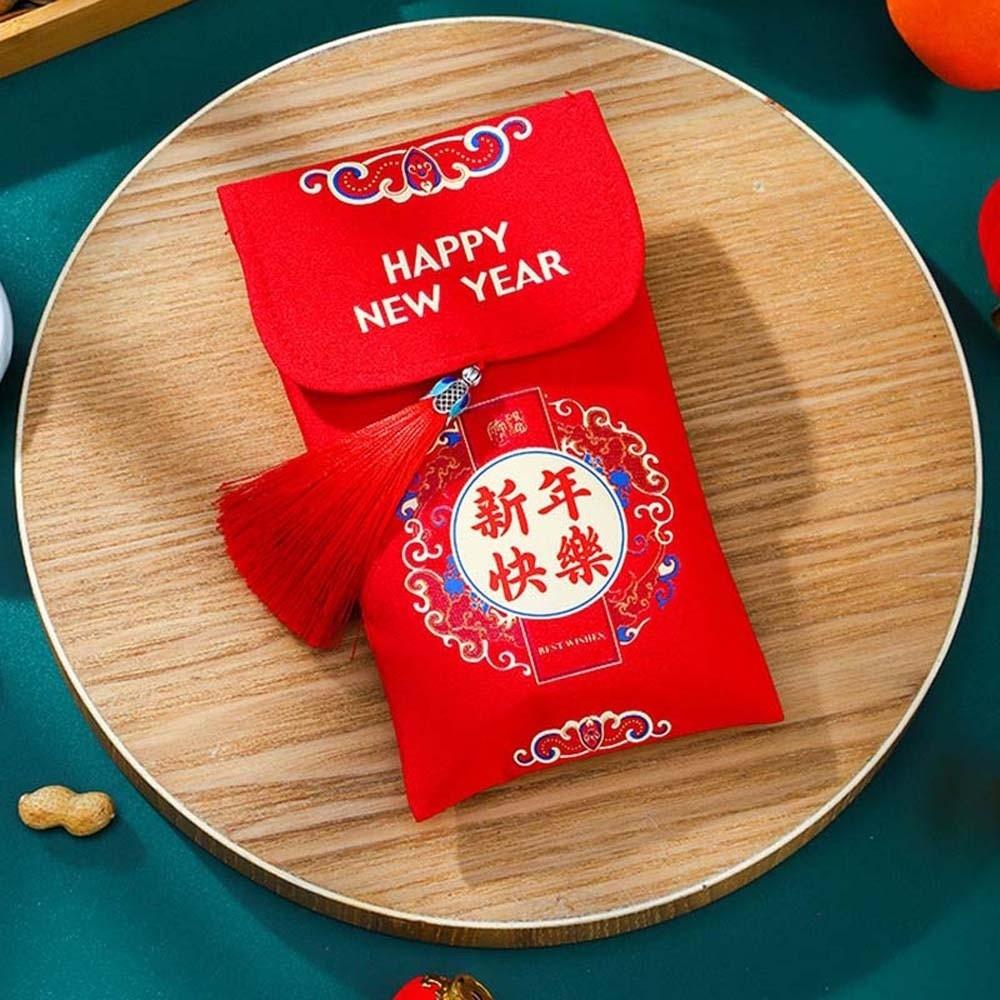 Traditional Spring Festival Red Envelope Printed Tassels Children's Money Bag Blessing Bonus Lucky Money Packet