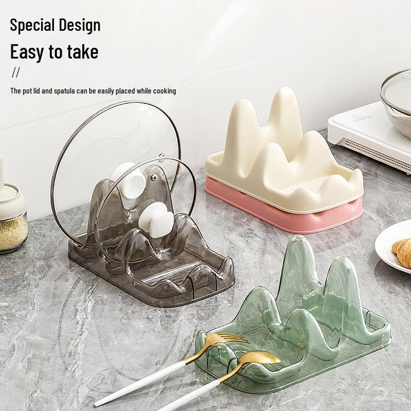 Countertop Pot Lid and Utensil Rack with Drip Tray for Lid, Board, Spatula, and Ladle Storage