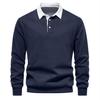 Stylish color-blocked long-sleeved pullover with half-button placket for versatile wear.