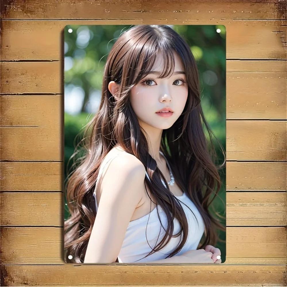Metal Sign Korean Beauty Wall Art, Woman Portrait Hair Decor for Home Cafe Bar Gift
