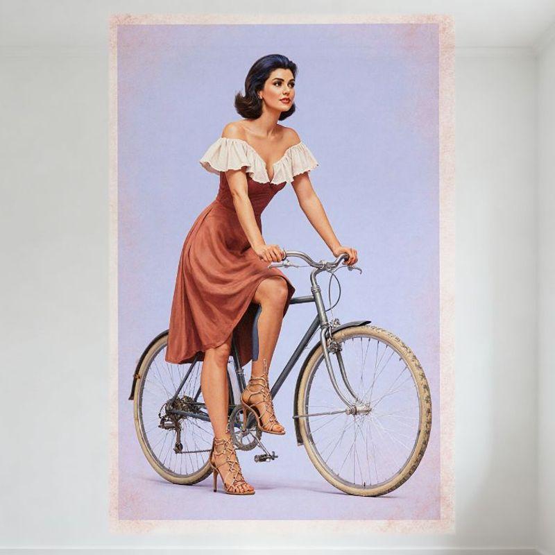 Sexy 1950s Pin - Up Style Woman On Vintage Silver Bicycle Retro Dress Metal Tin Sign for Bar Pub Home Wall Decor