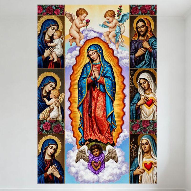 Virgin Mary Religious Icon Collage Metal Tin Sign Virgin of Guadalupe with Angels Holy Figures Wall Decor for Home Office Church