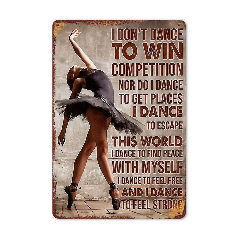 Vintage Ballet Girl Metal Tin Sign - "I Dance To Win Competitions" Quote, 8x12 Inch Rustic Wall Art for Home, Bedroom, Kitchen