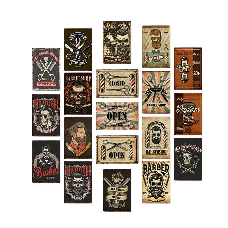Hohappyme Vintage Barber Shop Metal Signs Barbershop Poster Bar Pub Retro Plaque Haircut and Shave Beard Iron Plates 20x30 Cm