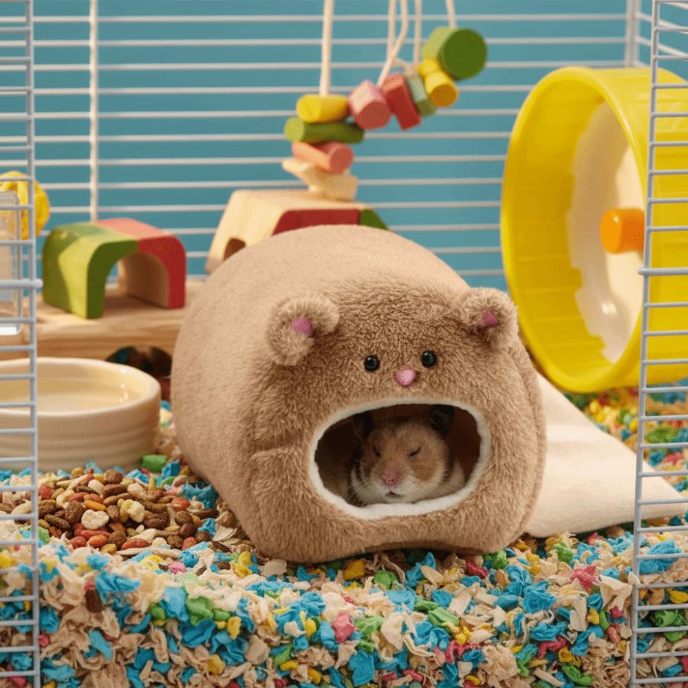 Cartoon Bear Shape Hamster Warm Bed Cozy Fleece Pet Sleep Nest Cute with Mat Hamster Hammock Cage Accessor
