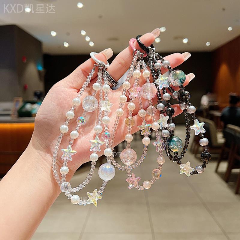 New Crystal Starfish Double-Layer Phone Chain Ins Style Crystal Pearl Beaded Short Phone Lanyard Women's Bag Pendant