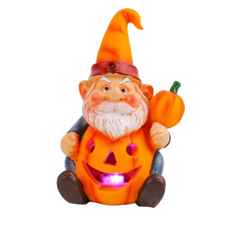 Cute Halloween Gnome Pumpkin Statues with Light Realistic Pumpkin Old Men Statue Funny Resin Crafts Halloween Ornaments