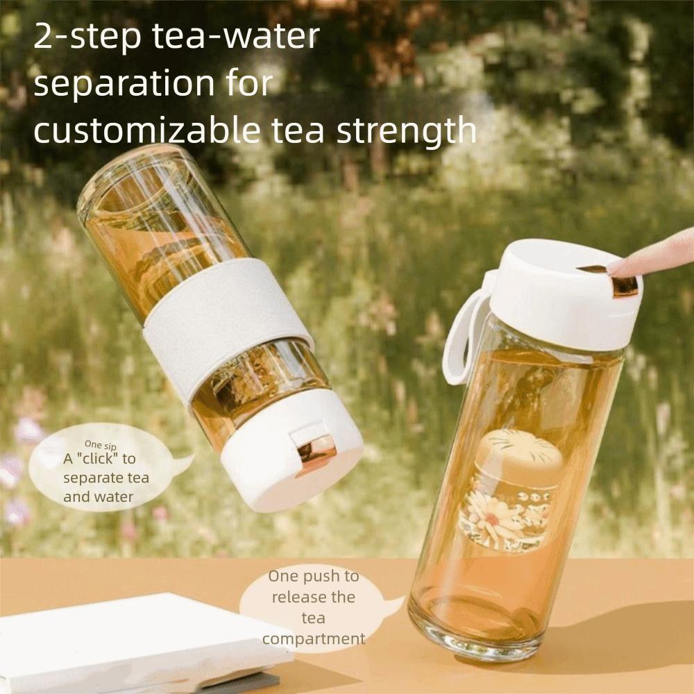 Portable Design Glass Water Bottle Large Capacity High Temperature Resistant Tea Water Separation Cup Tritan Material