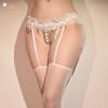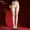 Lace Garter Stockings One-piece Mesh Open Crotch Garter Puff Skirt Long Stockings Over-the-knee Socks Sexy Black Silk