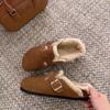 Fashion New Women Slippers Fur Flats Short Plush Mules Shoes Women Fashion Buckle Soft Sole Cotton Shoes Suede Home Warm Slippers Mules