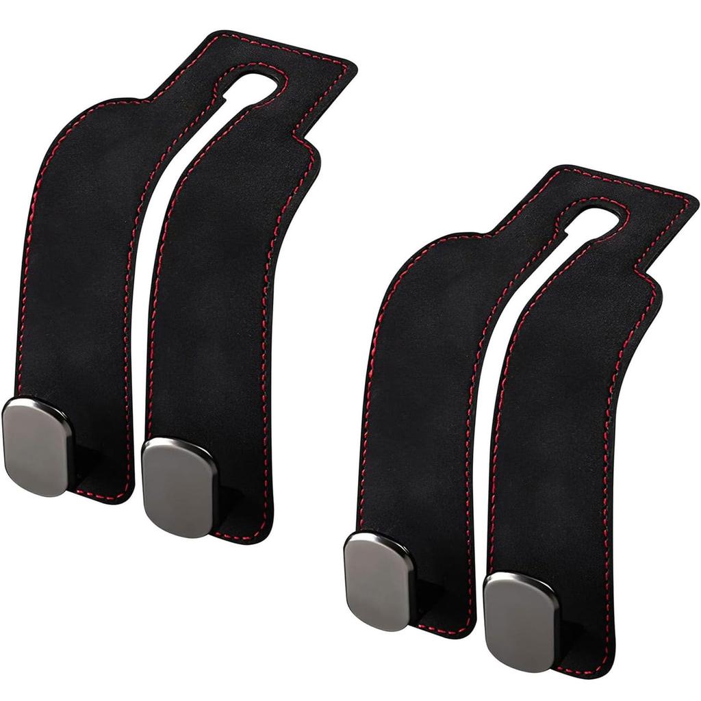 Mirhua Car Seat Double Hook Set of 2 Selected Leather Metal Car Storage Heavy Duty Car Accessories Leather (Black 2pcs)