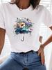 (Asian Size) Watercolor Flower Trend Women Tee Top Fashion Clothing T Shirt Woman Print Female Short Sleeve Graphic T-shirts