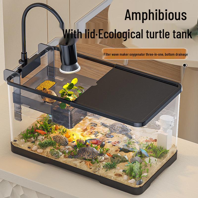 Versatile Desktop Turtle & Fish Aquarium with Basking Platform and Integrated Circulation System