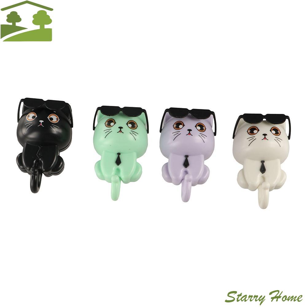 Funny Plastic Cartoon Cat Hooks Wall Hanging Decorative Key Hangers Waterproof Sticky Hooks Dormitory