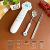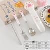 Adorable Cat Paw Stainless Steel Cutlery Set: Spoon, Fork, and Chopsticks - Cute Cartoon Design, Portable Three-Piece Set.