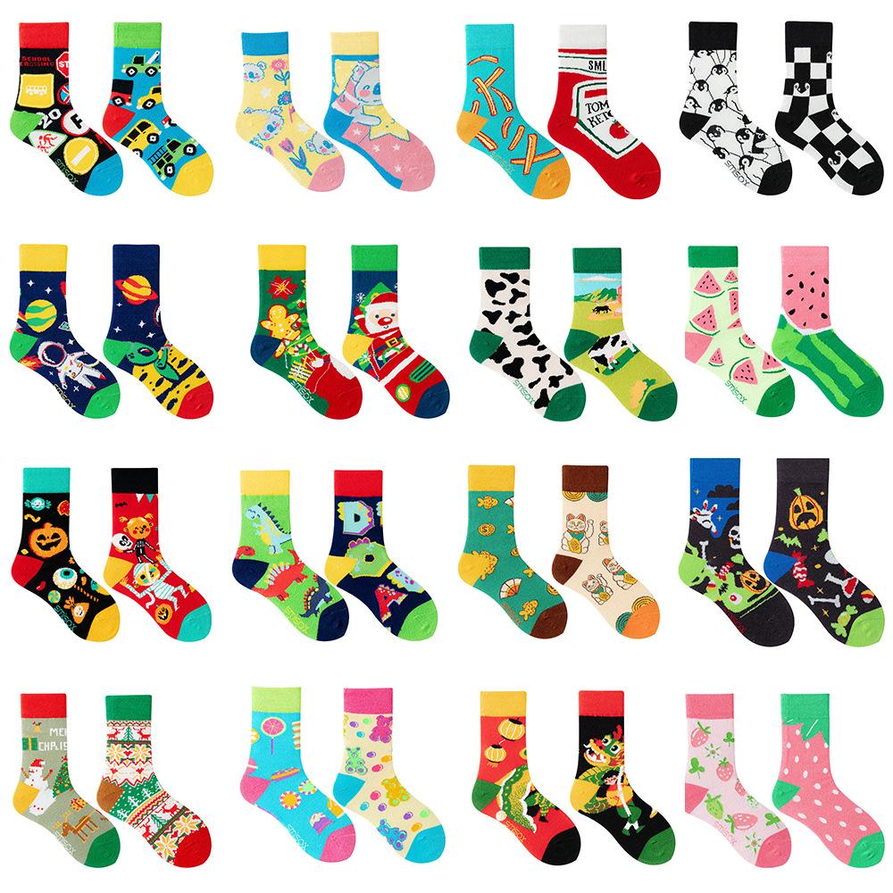 Children's Asymmetrical Cartoon Mid-Calf Socks - Colorful Parent-Child Style, Trendy Fashion for Kids