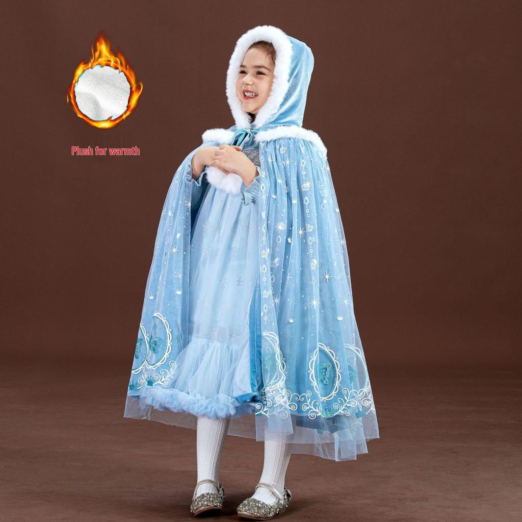 Frozen Elsa Princess Dress & Cloak Set for Girls - 2025 Autumn/Winter Halloween Costume