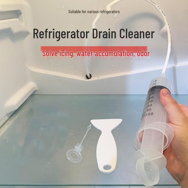 Refrigerator Unclogger & Cleaner Set: Bristle Brush, Cleaning Brush, Drain Unclogger, Deodorizer Box, Syringe