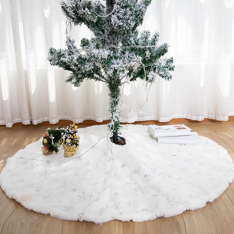 White Sequin Snowflake Plush Christmas Tree Skirt