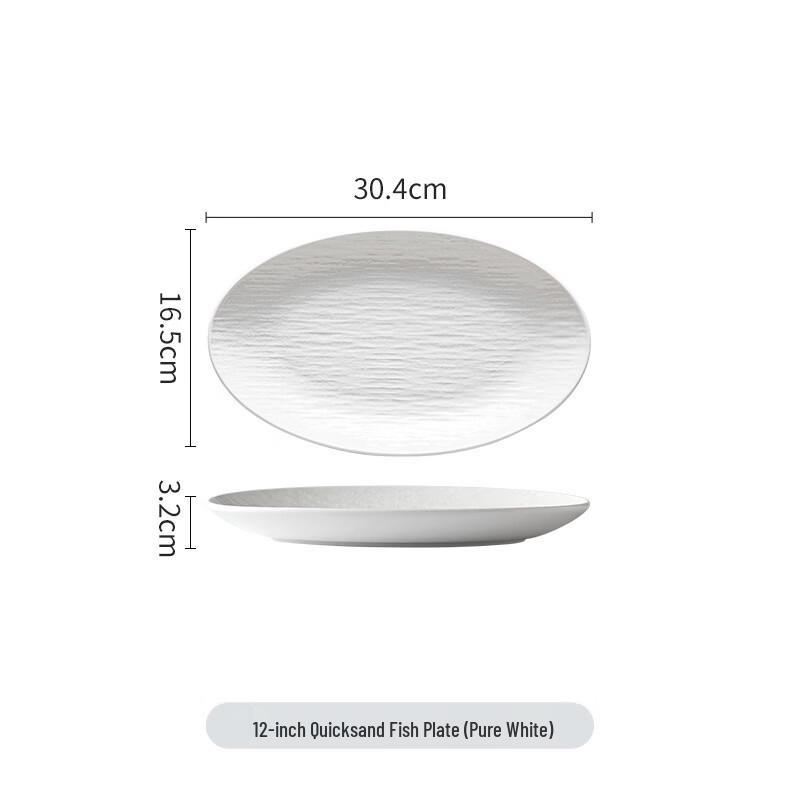 Model12-inch White Quicksand Rock Pattern Oval Fish Plate