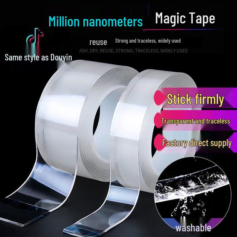 Magic Traceless Nano Tape: Durable, Washable, Clear Double-Sided Acrylic Tape - Waterproof and Reusable, As Seen On TikTok.
