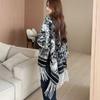 Korean Style Plaid Shawl Coat - Women's Spring/Autumn Cashmere-Feel Tassel Cloak