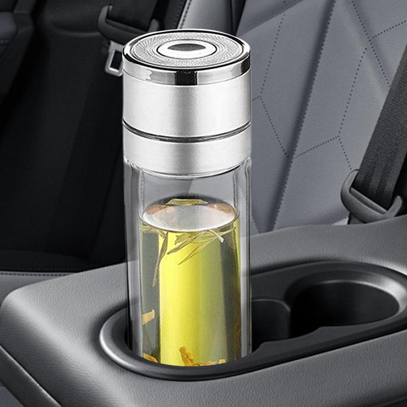 350/430ml Portable Quick Opening Glass Water Bottle Business Style Double Layer Tea Water Coffee Mug For Travel Home Car Office
