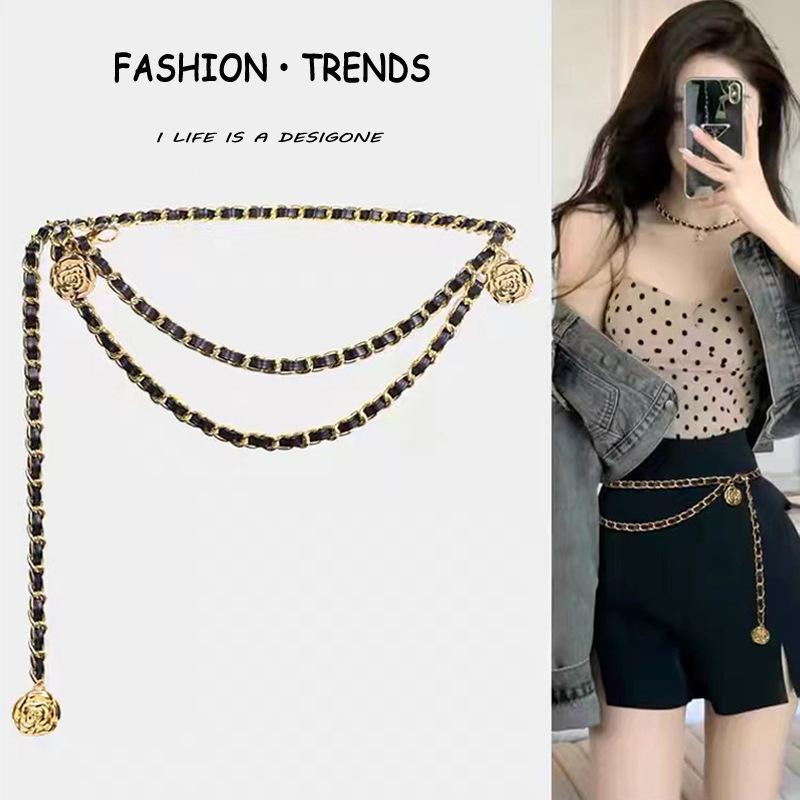 Women's Versatile Gold Waist Chain Belt - Stylish Leather Accessory for Dresses and Skirts