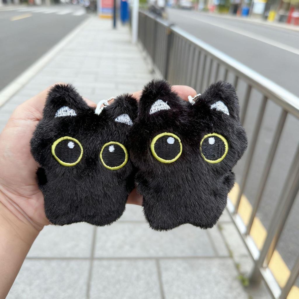 Best-Selling Squeaky Black Cat Plush Keychain - Cute Kitten Ornament Keyring for Couples
