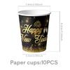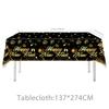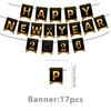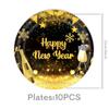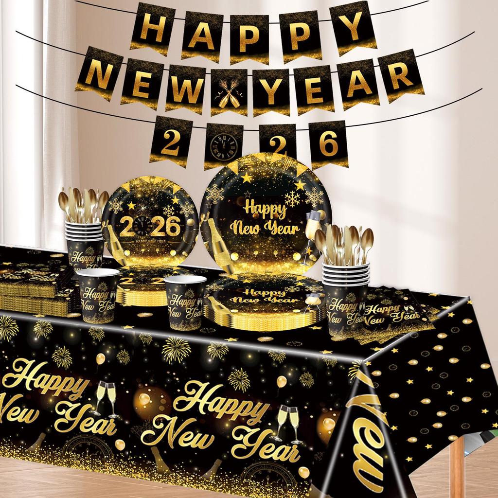 New Year 2026 Black and Gold Party Set: Paper Plates, Napkins, Pull Flag, Tablecloth