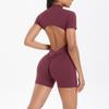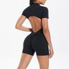 European-American Solid Color Zipper Back Yoga Jumpsuit - Breathable and Tight-Fitting