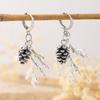 Retro Pine Cone Branch Earrings - Silver & Gold Dangle, European-American Autumn/Winter Fashion for Women