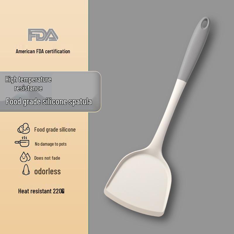 Grayish-white Silicone Kitchen Utensil Set: Non-stick Spatula, High-temp Resistant Ladle, Food-grade for Stir-fry and Soups.