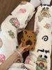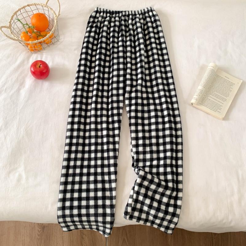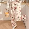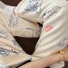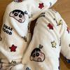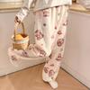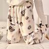 Korean Style Women's Fleece Pajama Pants - Flannel Cartoon Design for Autumn and Winter
