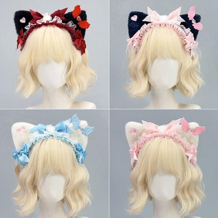 Kitten Anime Headpiece for Party Stage Birthday Face Wash Hairbands Stage Cats Ear Wing Headwear Photo Props