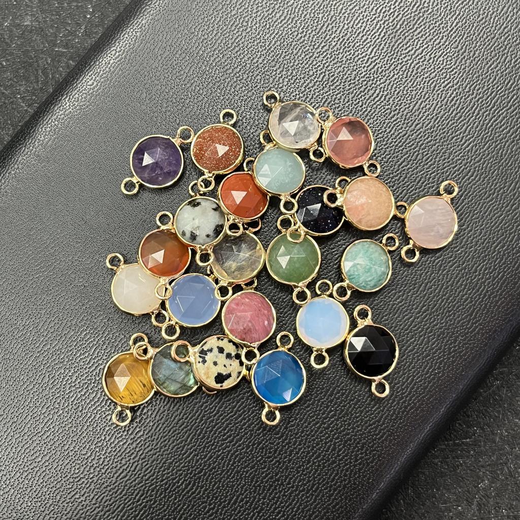 2Pcs, Faceted Natural Stone Connector, Minimalist Handcrafted Round Agate Gems Pendant Connectors for Jewelry Making DIY Necklace Bracelet Accessories