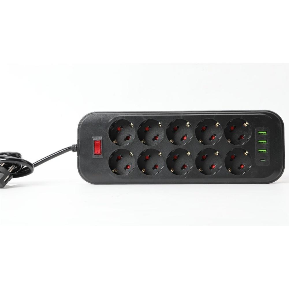 Surge Protector EU 10-Outlet Strip Built-in USB Ports Surge Protection Overload Protection Space-saving Layout