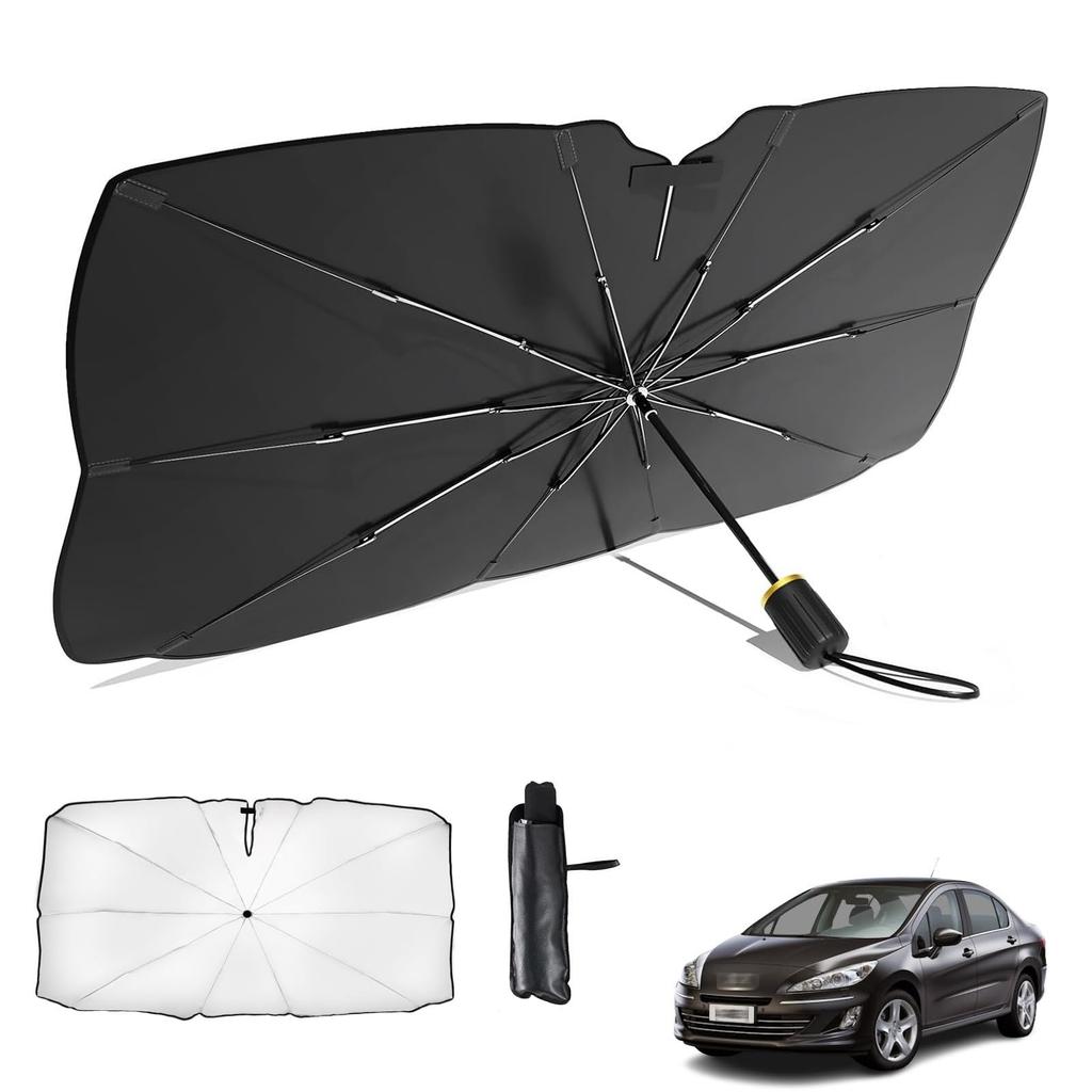 (Compatible Vehicles & Polymer Insulation Materials) Compatible with Peugeot 408 1st Gen 2010-2014; Perfect sunshade for the front of your car. The umbrella surface is made of multi-layer nano polymer insulation material, and the exterior is titanium silver , which reflects strong sunlight to reduce the temperature of your car and blocks 99% of harmful UV rays, creating a comfortable indoor space. You also relax in the car without being seen by others