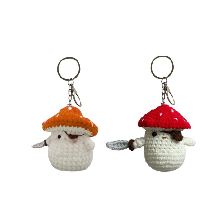 Unique Mushroom Shaped Keychain Crochet Doll Pendant Keyring Handmade Amigurumi Stylish Soft Cotton Yarn Accessory