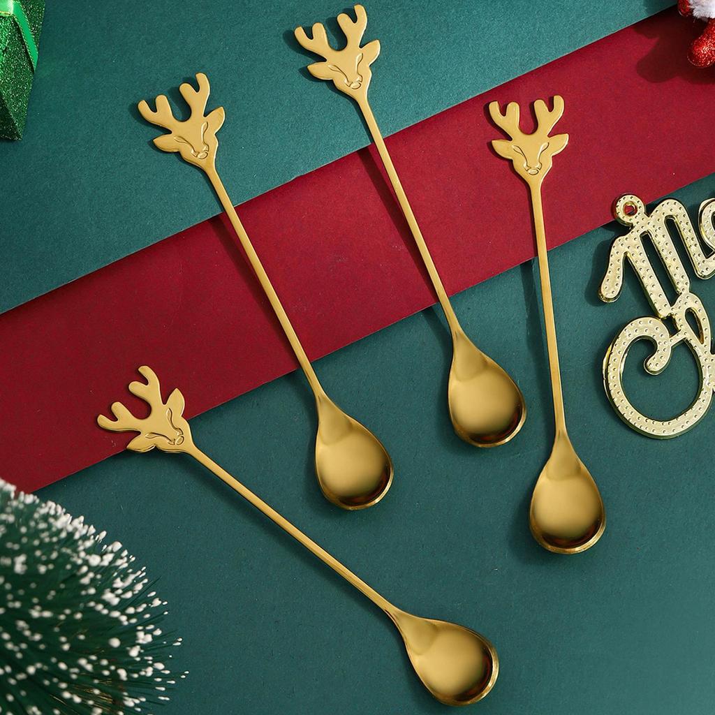 Coffee Stir Spoons 4 Pieces Stainless Steel Christmas Coffee Spoons Decorative Teaspoons Set For Dessert Eating Cooking Cream