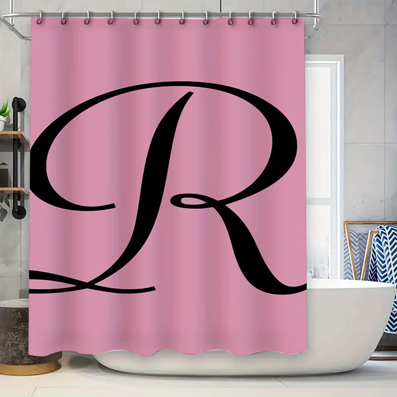 Pink Bath Shower Curtain with Letter Print Personalized Custom Name Monogram Decor for Bathroom Accessories Sets