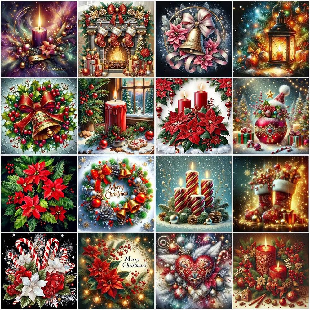 DIY 5D Diamond Painting Christmas Wreath Mosaic Candle Full Drill Embroidery Flower Crafts Art Supplies Unique Gift