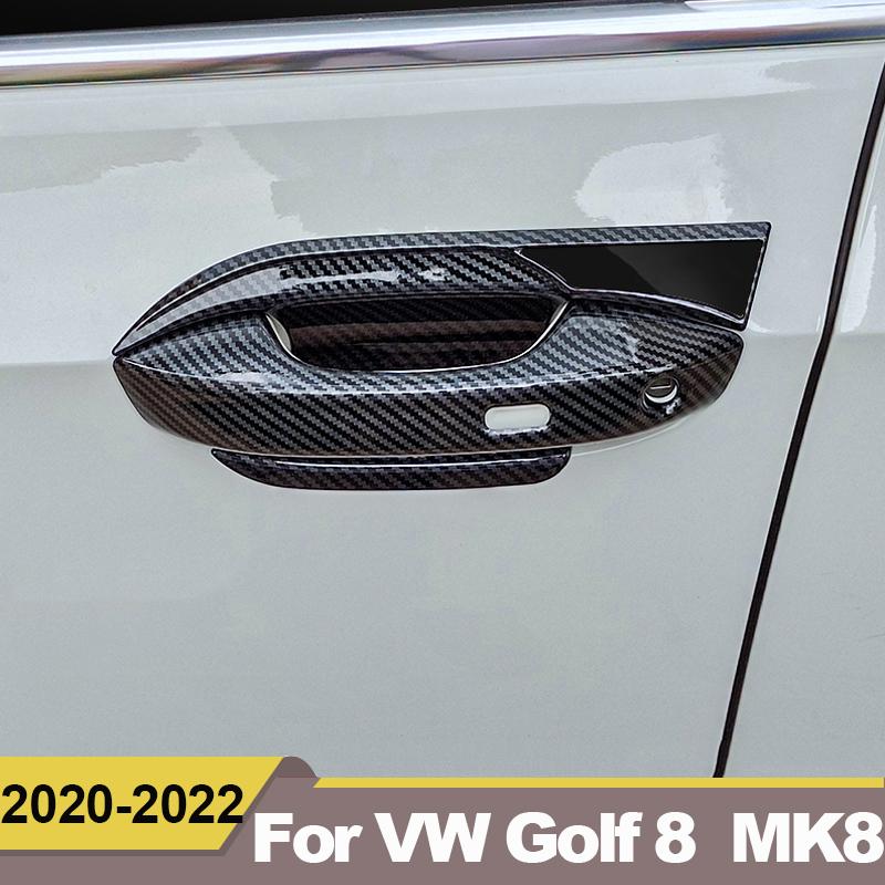 ABS Carbon Fiber Car Door Handle Door Bowl Cover Protector Trim Stickers For Volkawagen VW Golf 8 MK8 2022 Accessories