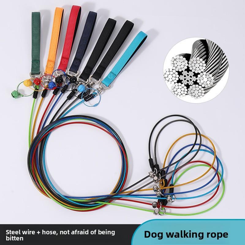 Anti-bite Steel Wire Dog Leash, Dog Chain, Thin Dog, Labrador, Large and Medium-sized Dog Integrated P Leash