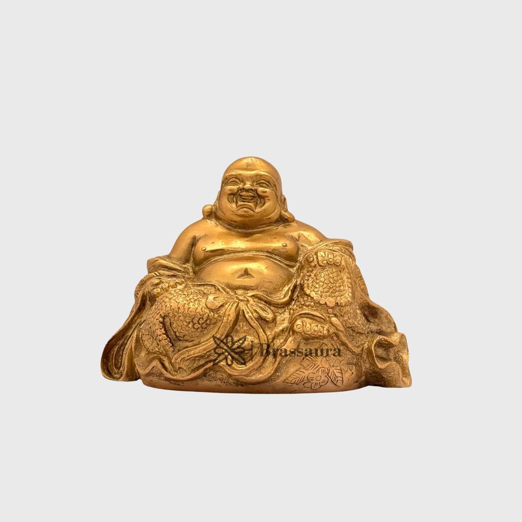 Pure Brass Laughing Buddha Idol, For Home Decor, Buddha Statue For Good Luck