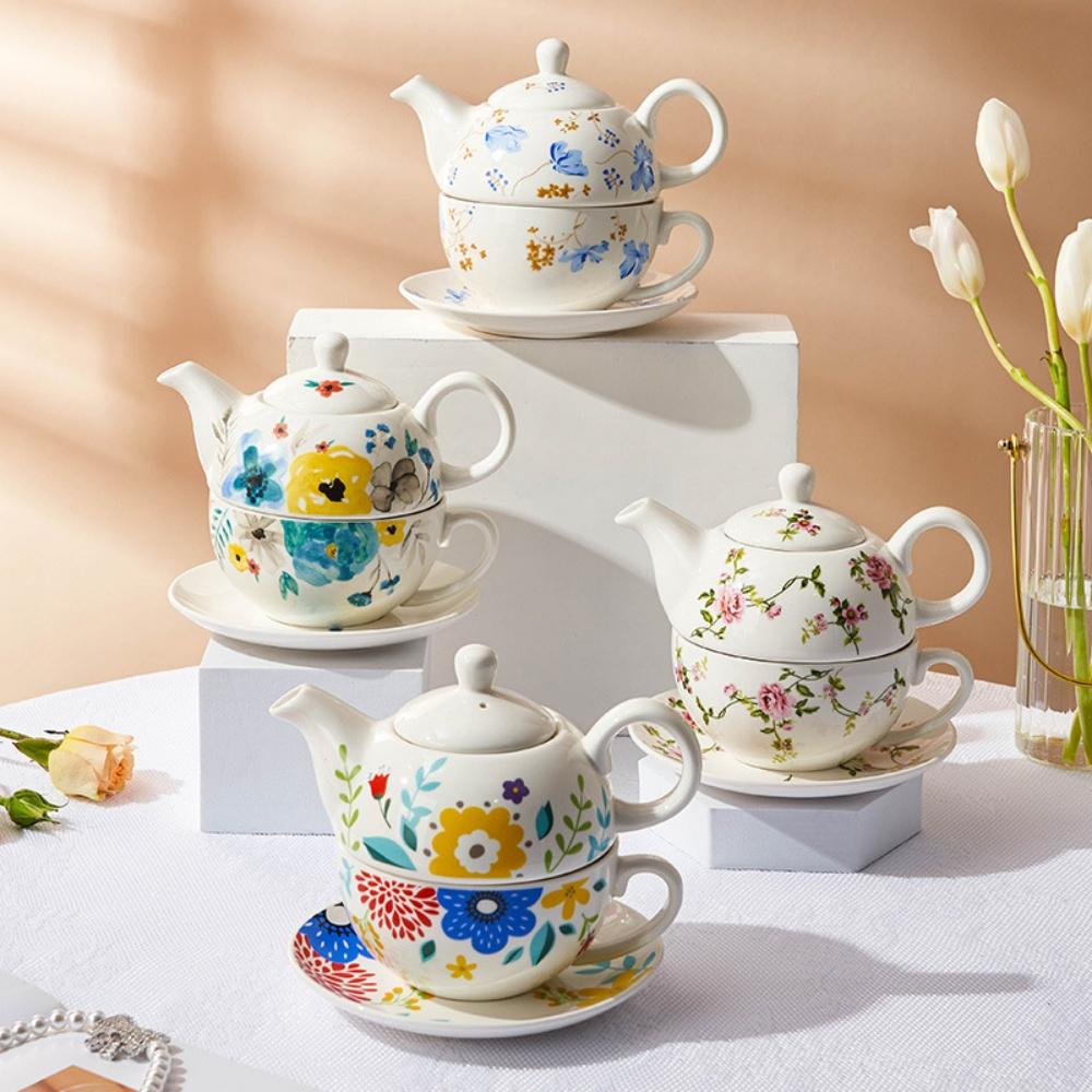 Bone China Tea for One Set In Floral Design Ceramic Teapot Cup and Saucer Set Teaware