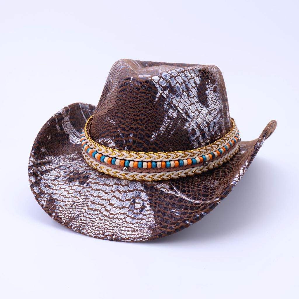 Vintage Western Cowboy Hat Party Carnival Imitation Crocodile Pattern Cross-Border Hat Autumn And Winter Women'S High-End Big Brim Top Hat